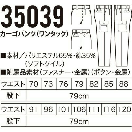 クロダルマ 35039 カーゴパンツ ワンタック 作業着 ポケット付き ボトムス ワークウエア カーゴパンツ(ワンタック) ワークウェア 作業服(秋冬・通年) パンツ・スラックス 腿ポケット有ズボン 作業服 おしゃれ かっこいい 人気 ズボン 作業ズボン 作業パンツ 作業 工事 土木 塗装 DIY diy