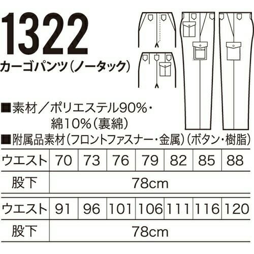 クロダルマ 1322 カーゴパンツ ノータック 作業着 ポケット付き ボトムス ワークウエア カーゴパンツ(ノータック) ワークウェア 作業服(秋冬・通年) パンツ・スラックス 腿ポケット有ズボン 作業服 作業 おしゃれ かっこいい 人気 ズボン 作業ズボン 作業パンツ 作業 工事 土木 塗装 DIY diy