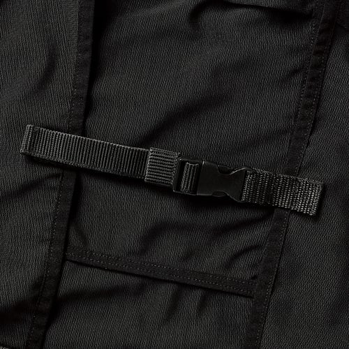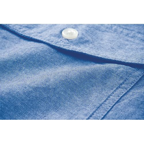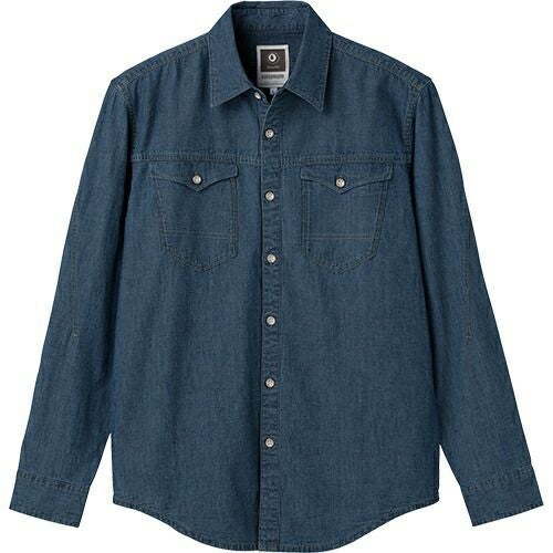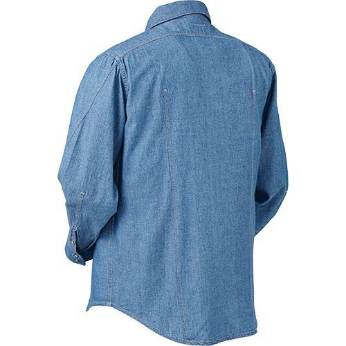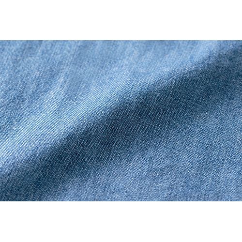 カラーはブルーを基調としており、作業着とは思えないほど非常にデザイン性の高い半袖シャツとなっています。左胸に異素材のファスナーポケットがついた、風合いのいいデニムニットの半袖Tシャツです。また、裾は絞れるようにドローコードが付いていますので、現場作業に応じて絞り込むことも可能です。