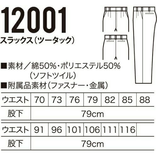 クロダルマ 12001 スラックス(ツータック) VP 作業着 ボトムス ワークウエア ワークウェア 作業服(秋冬・通年) パンツ・スラックス 腿ポケット無ズボン 作業服 作 作業ズボン 作業パンツ ワークパンツ ズボン おしゃれ かっこいい オフィス ユニホーム 作業 軽作業 外作業 工場 現場