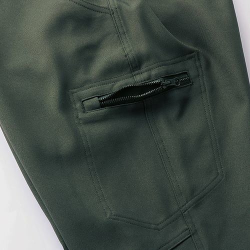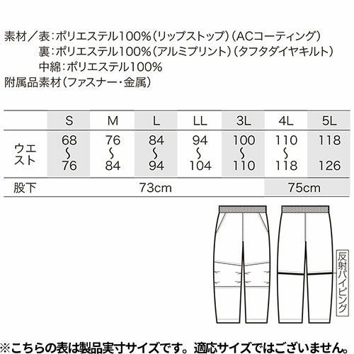 中綿と背中裏のアルミプリントが高い保温性を発揮随所に反射素材を施して安全性にも配慮した軽防寒パンツ