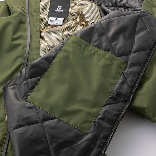 しっかり防水、しかもムレにくいグラフェン再生中綿と裏地のブラックアルミプリントが優れた保温性を発揮防水性を高めるシームテープ加工を採用し防水防寒を追求したユニフォームです。