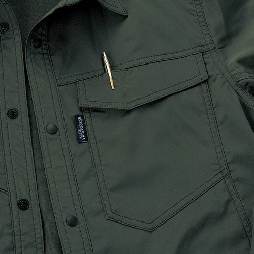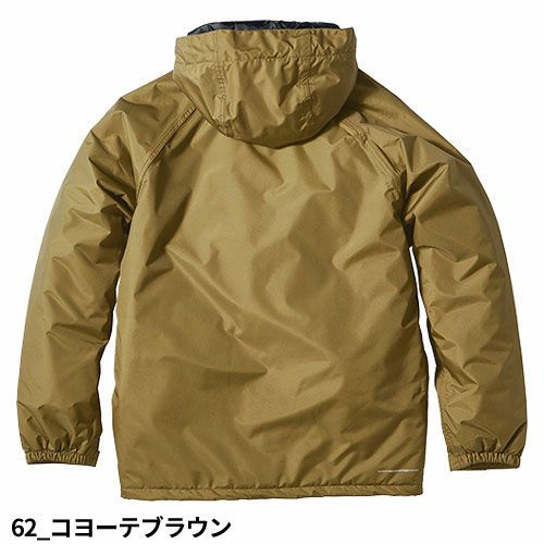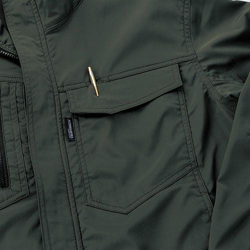 冬の厳しい風や雨から着る人を守る3層ボンディングとなっており、収縮性のあるストレッチ素材を採用しています。このストレッチジャンパーでは、背中の裾部分は反射プリントが貼りつけられているため、視認性を確保しづらい夜間作業時においても安全性を確保することができます。また、左袖にはペン差しがあるため筆記をする際に便利です。袖口ストレッチバインダーテープ・ハンドウォーマーポケット・裏地フリース素材など防寒対策も充実しています。