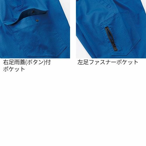 製品洗い加工を施した風合いのある超ストレッチデニムとなっています。伸縮性のあるストレッチ素材を使用しており、ジャンパーの袖内側・パンツの内股ギャザーで抜群の動き易さを実現していますので、激しい現場作業でも邪魔になりません。左袖にはマルチポケットがありますので、現場道具などを持ち歩くのにも大変便利となっています。