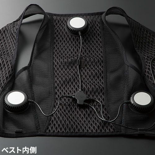 夏にはエアーセンサー(AIRSENSOR、空調服)ファン付き作業服ジャンバータイプだけではなく、スポーティーなファン付き空調服ベストも扱っております。
