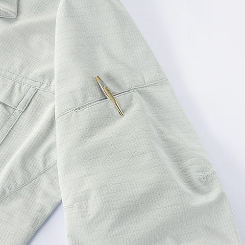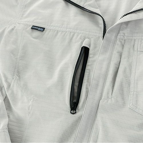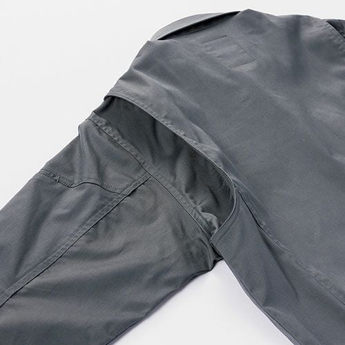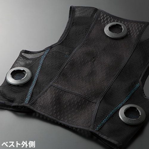 ファン付きウェアのインナーとして最適 ジャガード編みで作られた身頃のメッシュ素材はファンの風を最大限カラダへ送り込む袖の布帛生地が草木などから腕を守る