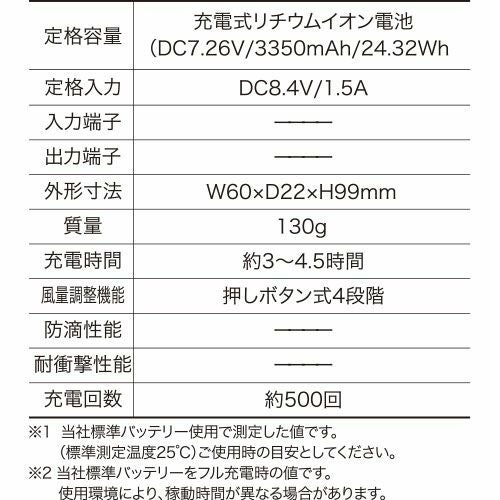 初めてのファン付きウェアにおすすめ! 小型軽量バッテリーで携帯性抜群。最大16時間の長時間可動。ファンの音がうるさくない静音性。多機能でありながらリーズナブルな価格でお買い求めいただける商品です。ファン付きウェアであれば服の中を風が吹き抜け様々なシーンを快適に過ごせます。