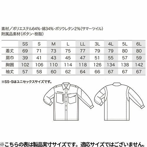 作業服 ジャンパー クロダルマ 長袖シャツ 25684 作業着 春夏 低価格 高品質 男女兼用 静電気帯電防止 ストレッチ シンプル 着やすい