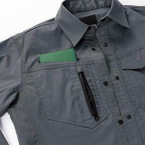 吸汗速乾性に優れた長袖・半袖ポロシャツ両脇に消臭テープと表からは見えにくいコンシールファスナー、左袖にはペン差しを装備
