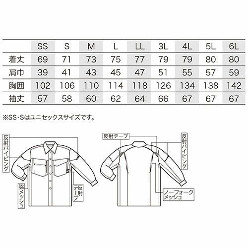 作業服 ポロシャツ 長袖 クロダルマ 長袖ポロシャツ 25474 作業着 春夏 前後反射素材 JIS-T8118静電気帯電防止 おしゃれ カッコいい シンプル スタイリッシュ
