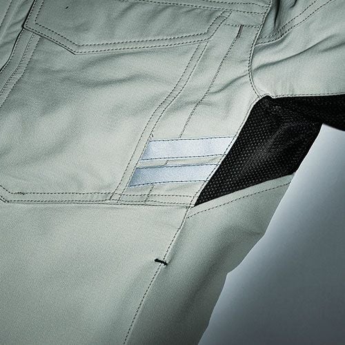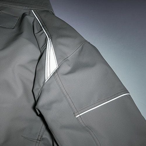JIS規格をクリアする制電素材採用 ポロシャツデザインにマッチした反射テープで安全性をアップ両脇部分には消臭テープも施しました。
