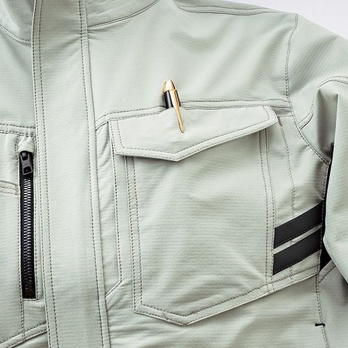 冬の厳しい風や雨から着る人を守る3層ボンディングとなっており、収縮性のあるストレッチ素材を採用しています。このストレッチジャンパーでは、背中の裾部分は反射プリントが貼りつけられているため、視認性を確保しづらい夜間作業時においても安全性を確保することができます。また、左袖にはペン差しがあるため筆記をする際に便利です。袖口ストレッチバインダーテープ・ハンドウォーマーポケット・裏地フリース素材など防寒対策も充実しています。