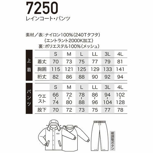 レインジャケット クロダルマ バックインレインコート 47417 レインウエア 合羽 カッパ 自転車 バイク 通勤 通学