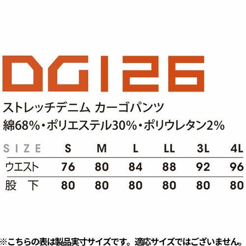 作業服 デニム クロダルマ D.GROW ストレッチデニムカーゴパンツ DG126 作業着 通年 秋冬 カジュアル おしゃれ カッコいい