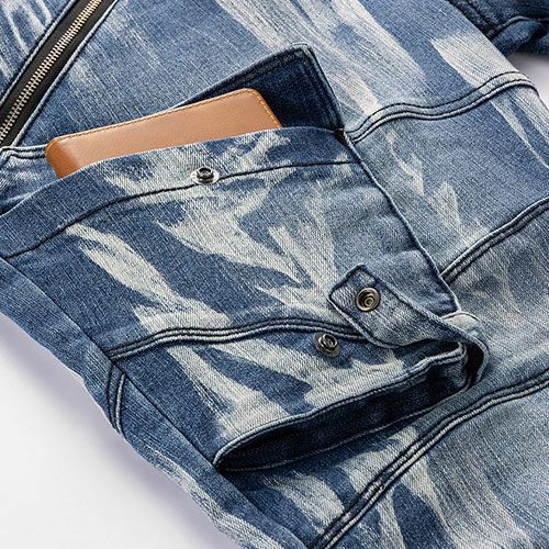 インディゴブルーのストレッチ素材を採用したストレスフリーの長袖ジャンパー インディゴはインディゴブルーのストレッチデニム素材を採用し個性際立つパッチワーク加工と皺加工でよりファッショナブルにインディゴブリーチはインディゴブルーのストレッチ素材を独自のブリーチ加工を施した趣のある風合いと個性が印象的ストレッチ素材で快適な履き心地を実現したカーゴパンツ