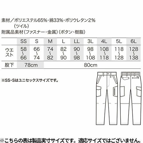 作業服 カーゴパンツ クロダルマ カーゴパンツ(ノータック) 35680 作業着 春夏 リサイクル繊維 ストレッチ 軽量 男女兼用 静電気帯電防止