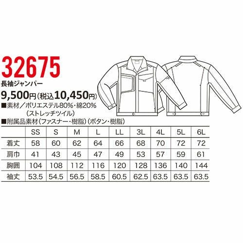 作業服 ブルゾン クロダルマ ストレッチ長袖ジャンパー 32675 作業着 通年 秋冬 制電 ストレッチ レディス対応 脇がつっぱらない おしゃれ かっこいい 人気 ワーク企業 法人 作業 工場 外作業