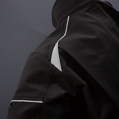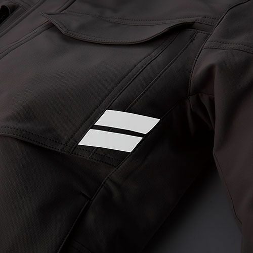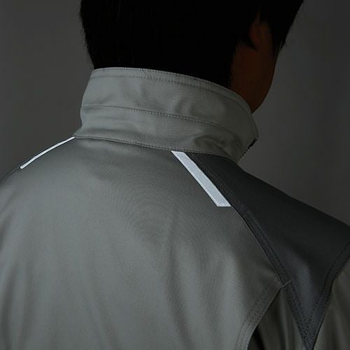 冬の厳しい風や雨から着る人を守る3層ボンディングとなっており、収縮性のあるストレッチ素材を採用しています。このストレッチジャンパーでは、背中の裾部分は反射プリントが貼りつけられているため、視認性を確保しづらい夜間作業時においても安全性を確保することができます。また、左袖にはペン差しがあるため筆記をする際に便利です。袖口ストレッチバインダーテープ・ハンドウォーマーポケット・裏地フリース素材など防寒対策も充実しています。