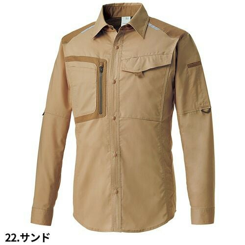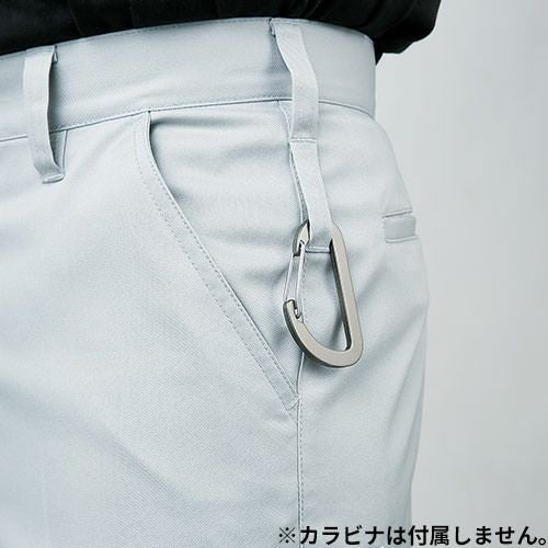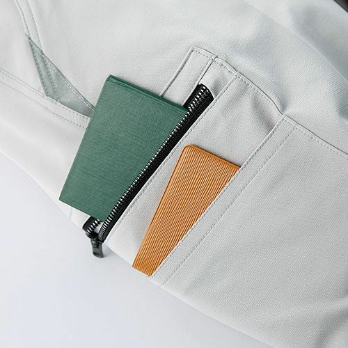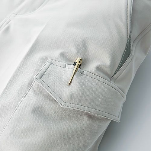 同系色で明度差のあるトーンオントーン配色で上下の統一感を演出。国連の「持続可能な開発目標 SDGs」への取り組みが反映された商品です。 ノータックのカーゴパンツにはポケット部に反射素材を使用して安全性にも配慮。