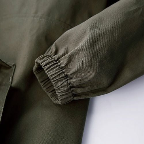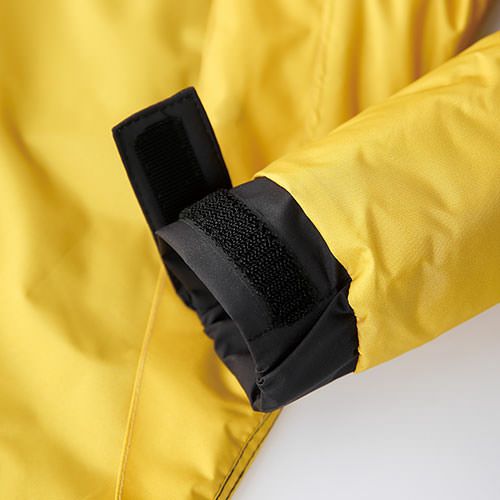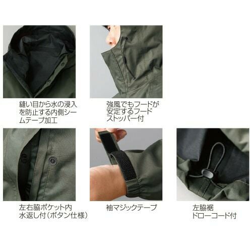 耐水圧5000mm、透湿性5000g/m2 24h(B-1法)の防水生地を使用優れた撥水性、防風性も発揮ストレッチ素材、ストレッチリブ採用でストレスフリーの着心地を実現