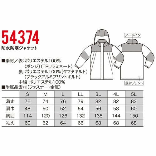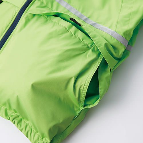 ヒーターシートを装着できる防寒ジャンパー 耐水圧5000mmの防水生地採用撥水性・防風性にも優れた防寒ジャンパー裏地にはアルミプリント加工を採用し保温性をキープ4cm幅の反射テープを前後に施し視認性をアップ