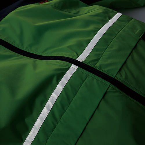 同系色で明度差のあるトーンオントーン配色で上下の統一感を演出。国連の「持続可能な開発目標 SDGs」への取り組みが反映された商品です。 前後に反射素材を使用して安全をサポート。脇が突っ張らないリラックスカット採用。