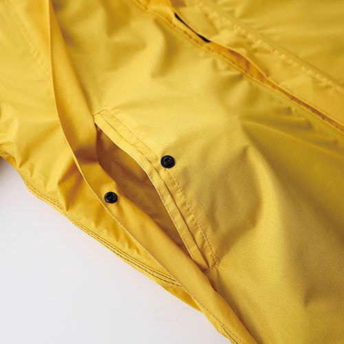 カッパとして必要な機能だけ残しました!!耐水圧10000mm、大雨にも負けない!透湿性5000g/m2 24h(b-1法)衣服内の蒸れを軽減! レインコート、レインパンツ合わせて約500gと軽量化を実現蒸れを防ぐ裏地メッシュ、取り外し可能なフード付きレインコートの背中裾部には視認性の高い反射プリントを採用