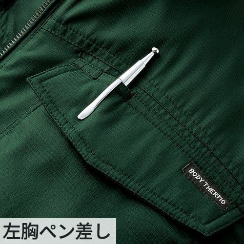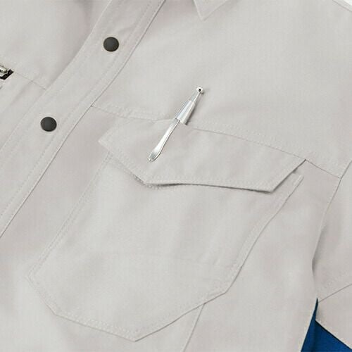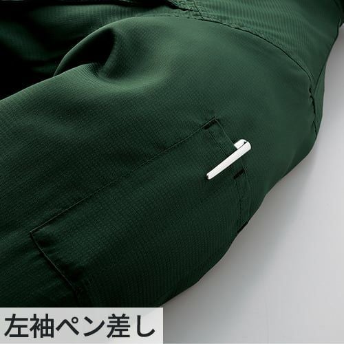 丈夫でしっかりした素材感の本体と接触冷感素材の袖を組み合わせた重ね着風のお洒落なポロシャツ消臭テープ、ペン差しを装備吸汗速乾性にも優れています。