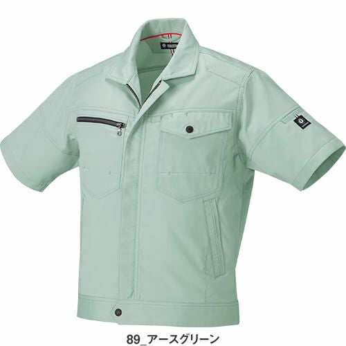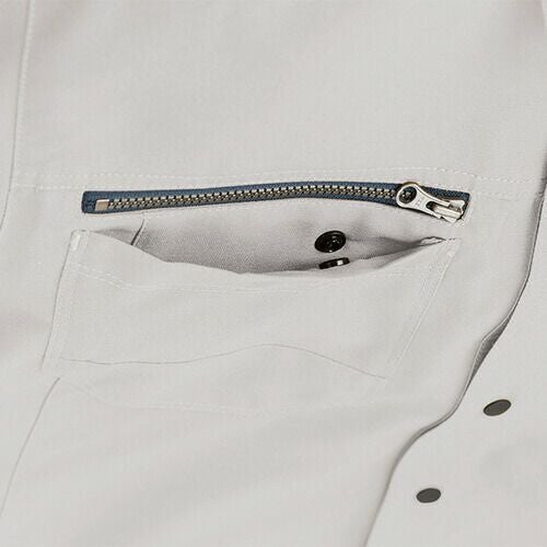 カラーはブルーを基調としており、作業着とは思えないほど非常にデザイン性の高い半袖シャツとなっています。左胸に異素材のファスナーポケットがついた、風合いのいいデニムニットの半袖Tシャツです。また、裾は絞れるようにドローコードが付いていますので、現場作業に応じて絞り込むことも可能です。