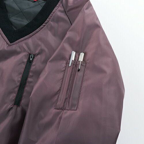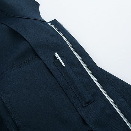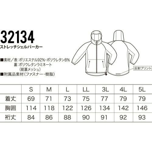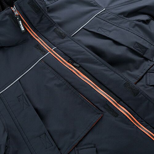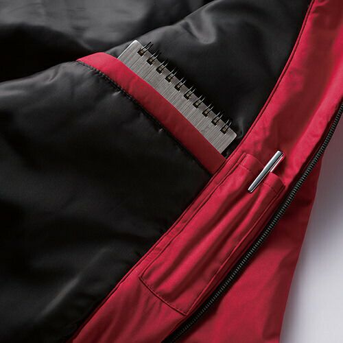冬の厳しい風や雨から着る人を守る3層ボンディングとなっており、収縮性のあるストレッチ素材を採用しています。このストレッチジャンパーでは、背中の裾部分は反射プリントが貼りつけられているため、視認性を確保しづらい夜間作業時においても安全性を確保することができます。また、左袖にはペン差しがあるため筆記をする際に便利です。袖口ストレッチバインダーテープ・ハンドウォーマーポケット・裏地フリース素材など防寒対策も充実しています。