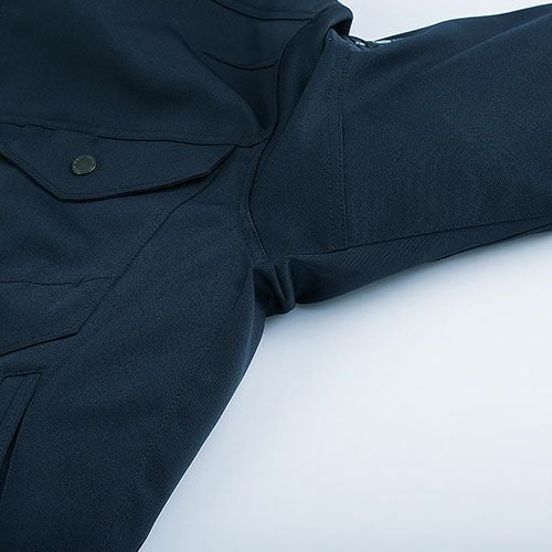 左胸に手帳もラクラク収納できるWポケットを装備。 服に立体感を与える肩ダーツと背中の切り替えしで着心地もアップ。