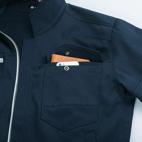 360度方向ストレッチと3Dカッティングでストレスフリー。優れた速乾性、ノーアイロンでお手入れも簡単。 作業性を高める収納ポケットを8カ所に装備。袖部には視認性を高める反射テープを採用。