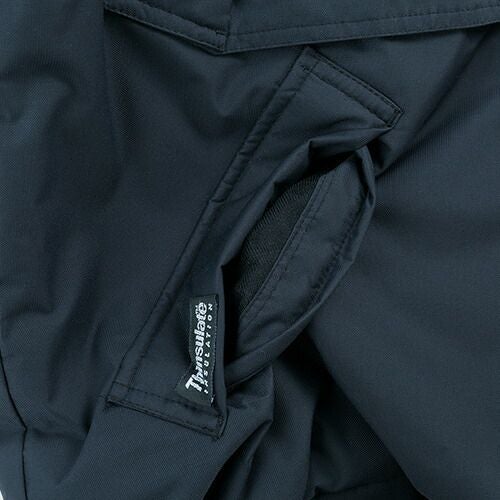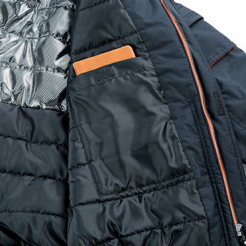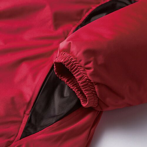 冬に負けない。自分に負けない。 裏地に保温性の高いアルミプリント、中綿に軽くて温かい高機能素材採用。耐水性にも優れた防水防寒のための必須アイテム、新登場。重ね着した中のズボンのポケットに手が届くスルーポケットを装備。