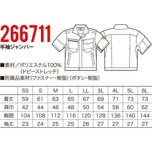 作業服 ジャンパー クロダルマ 半袖ジャンパー 266711 作業着 春夏作業着 作業服 ジャンパー 春夏