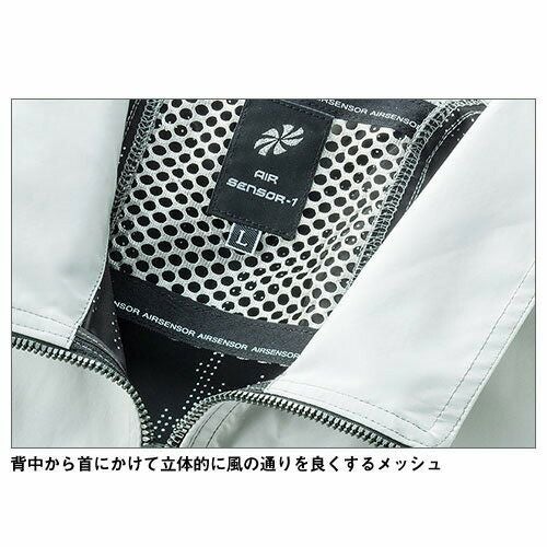風の誘導効率と快適感の両立 背中からヘルメット内まで、スムーズに涼しい風を誘導し、衣服内を快適にするエアセンサー1ワークジャンパー。