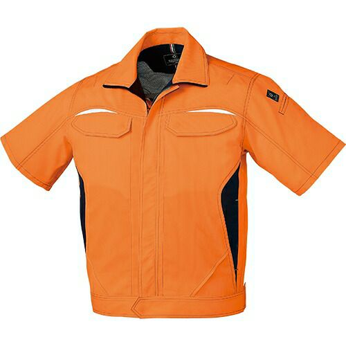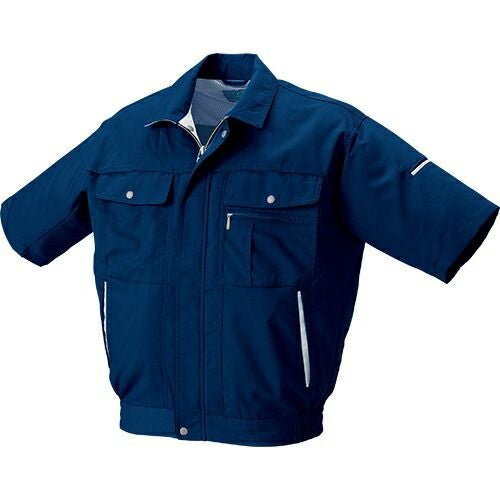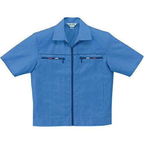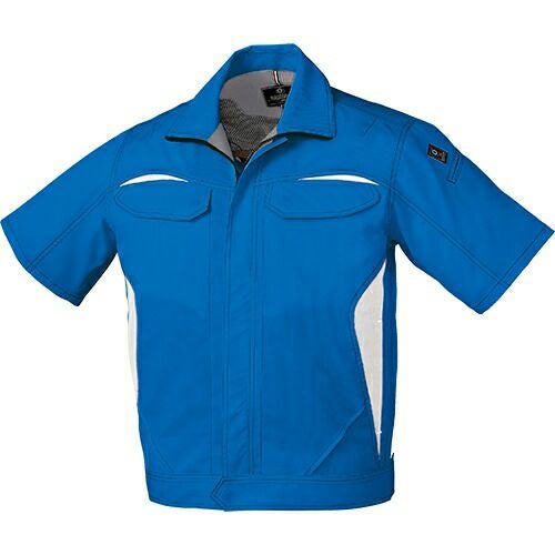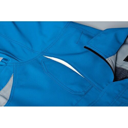 カラーはブルーを基調としており、作業着とは思えないほど非常にデザイン性の高い半袖シャツとなっています。左胸に異素材のファスナーポケットがついた、風合いのいいデニムニットの半袖Tシャツです。また、裾は絞れるようにドローコードが付いていますので、現場作業に応じて絞り込むことも可能です。