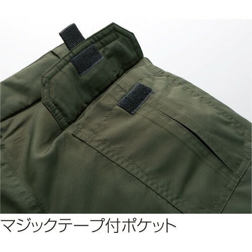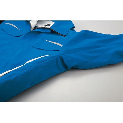 冬の厳しい風や雨から着る人を守る3層ボンディングとなっており、収縮性のあるストレッチ素材を採用しています。このストレッチジャンパーでは、背中の裾部分は反射プリントが貼りつけられているため、視認性を確保しづらい夜間作業時においても安全性を確保することができます。また、左袖にはペン差しがあるため筆記をする際に便利です。袖口ストレッチバインダーテープ・ハンドウォーマーポケット・裏地フリース素材など防寒対策も充実しています。