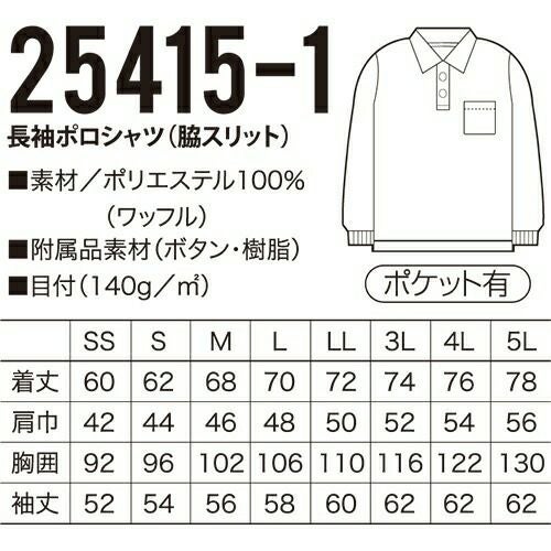 クロダルマ 25442-1 長袖ポロシャツ 作業着 長袖 ワークウエア KURODARUMA ワークウェア 作業服(秋冬・通年) シャツ(長袖) ポロシャツ 作業服