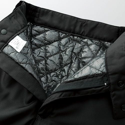 裏地にアルミ蒸着メッシュキルトを採用魔法瓶効果による保温で体温を逃さず、暖かさをキープします 表地には生地が裂けるのを防ぐリップストップを採用軽くて動きやすく、撥水性にも優れています