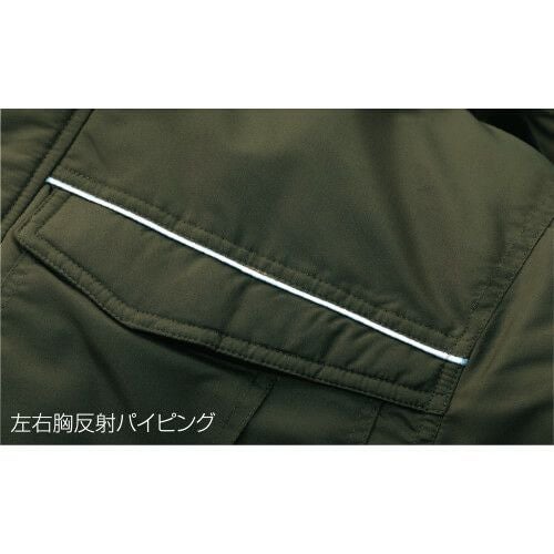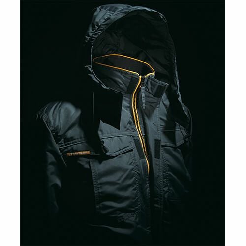 軽快な着心地なのに、確かな保温性を装備 衿周りの黄色がアクセントの高性能ジャンパー胸部分に反射パイピングを施し、視認性をアップ冬の作業の安全性と快適性を高めます