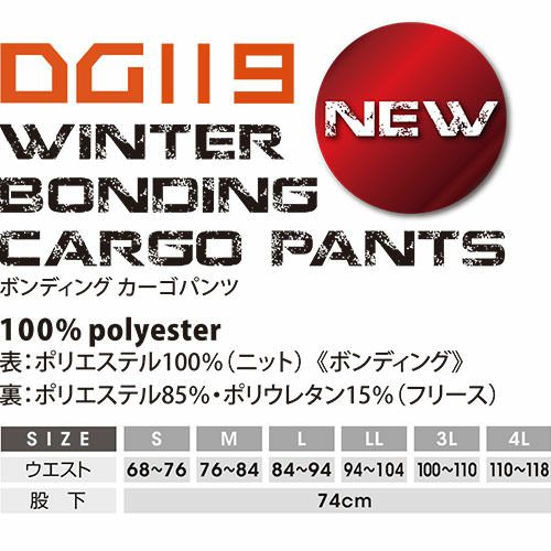 他の画像を見る 作業服 カーゴパンツ クロダルマ D.GROW ボンディングカーゴパンツ DG119 作業着 通年 秋冬 ストレッチ 制電 保温 おしゃれ かっこいい 人気 ズボン 作業ズボン 作業パンツ 作業 工事 土木 塗装 DIY diy 特別価格 ¥ 2,840 税込 〜 特別価格 ¥ 税込 裏地にフリースを使用したボンディング素材で保温性に優れ制電加工にストレッチ性、脇ゴム仕様で履きやすい防寒カーゴパンツ 詳細を見る お気に入りに登録する