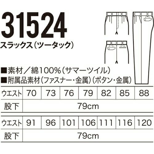 他の画像を見る クロダルマ 31541 スラックス(ツータック) 作業着 ボトムス ワークウエア ワークウェア 作業服(春夏) パンツ・スラックス 腿ポケット無ズボン 作業服 ポケ 特別価格 ¥ 3,950 税込 〜 特別価格 ¥ 税込 詳細を見る お気に入りに登録する