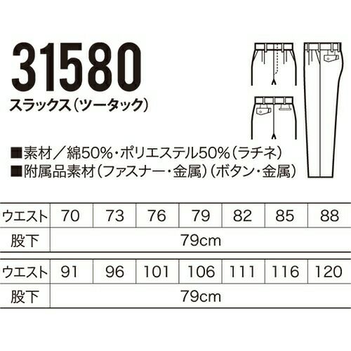 他の画像を見る クロダルマ 31598 スラックス ワンタック 作業着 ボトムス ワークウエア スラックス(ワンタック) ワークウェア 作業服(春夏) パンツ・スラックス 腿ポケット無ズボン 作業服 ポケ 特別価格 ¥ 3,817 税込 〜 特別価格 ¥ 税込 詳細を見る お気に入りに登録する