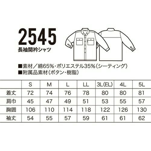 他の画像を見る クロダルマ 2545 長袖開衿シャツ VP 作業着 長袖 ワークウエア KURODARUMA ワークウェア 作業服(春夏) シャツ(長袖) ワークシャツ 作業服 Work 特別価格 ¥ 5,732 税込 〜 特別価格 ¥ 税込 詳細を見る お気に入りに登録する