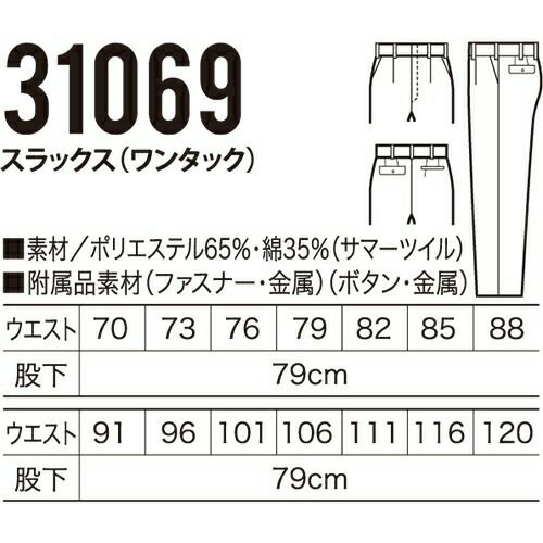 他の画像を見る クロダルマ 31069 スラックス ワンタック 作業着 ボトムス ワークウエア スラックス(ワンタック) ワークウェア 作業服(春夏) パンツ・スラックス 腿ポケット無ズボン 作業服 ポケ 特別価格 ¥ 3,532 税込 〜 特別価格 ¥ 税込 詳細を見る お気に入りに登録する