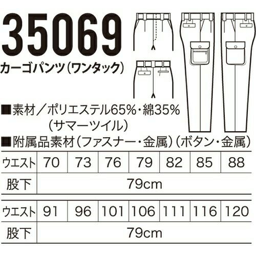 他の画像を見る クロダルマ 35069 カーゴパンツ ワンタック 作業着 ポケット付き ボトムス ワークウエア カーゴパンツ(ワンタック) ワークウェア 作業服(春夏) パンツ・スラックス 腿ポケット有ズボン 作業服 ポ 特別価格 ¥ 3,795 税込 〜 特別価格 ¥ 税込 詳細を見る お気に入りに登録する