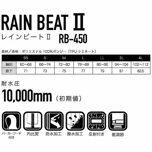 他の画像を見る 合羽 上下セット コヤナギ RAIN BEAT II レインビート2(上下セット) RB-450 レインウエア 合羽 カッパ 通勤 通学 自転車 バイク 農作業 旅行 登山 トレッキング ハイキング スポーツ観戦 野外フェス 特別価格 ¥ 3,483 税込 シンプル&スタンダードなレインスーツ 「雨の侵入を防ぐ」合羽として必要な機能は守りながら思い切ったコストダウンでコヤナギ最安値のベーシックレインスーツ 在庫切れ 詳細を見る お気に入りに登録する