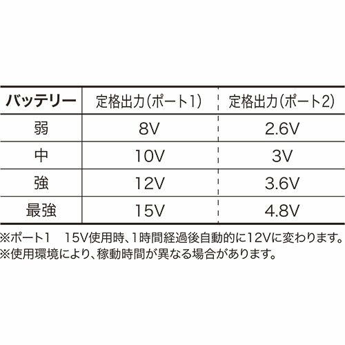 他の画像を見る EFウェア用ファンバッテリーセット 空調服 空調服 18Vロングケーブルスターターキット 2023年モデル XS23011L 熱中症対策 作業着 作業服 春夏EFウェア用ファンバッテリーセット 特別価格 ¥ 21,230 税込 最強ファンバッテリー。最大電圧18V、最大風量106L/秒 ■赤色LEDを採用し屋外での視認性が向上■JIS IP55(防塵防水)規格適合(水没等の水の浸入による故障を保証するものではありません)■9段階のバッテリー残量表示機能付 在庫切れ 再入荷お知らせ お気に入りに登録する