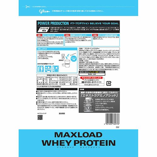 他の画像を見る サプリメント 健康食品 グリコ Glico マックスロード ホエイプロテイン3.0kg G76077、G76075、G76076 栄養補助食品 プロテイン健康グッズ サプリメント 特別価格 ¥ 21,670 税込 トレーニングで体づくりをしたい方、そのためにがんがん毎日プロテインを摂りたい方におすすめです。 体づくりには欠かせないたんぱく質として、乳由来のホエイたんぱくを使用したプロテインです。 詳細を見る お気に入りに登録する