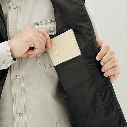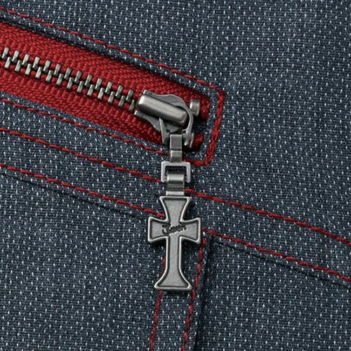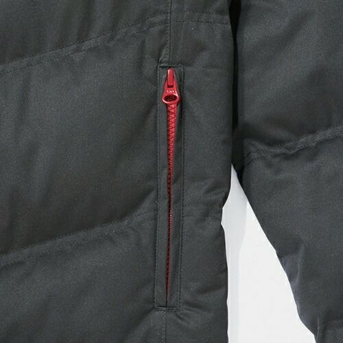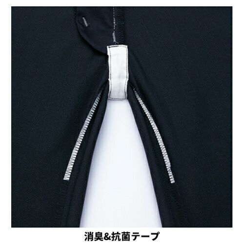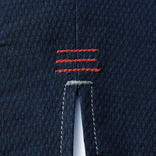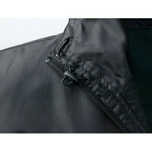 アシンメトリーなデザインとツインファスナー及びアクセントの赤がかっこいいハード感を演出しています。肩のベンチレーション機能は伸縮性の高いアコーディオンニットを採用しています。高通気性素材を使用していますので、常にさわやかな着心地を演出してくれます。暑い季節に着こなしても涼しさとかっこよさを両立できる作業着であると言えるでしょう。